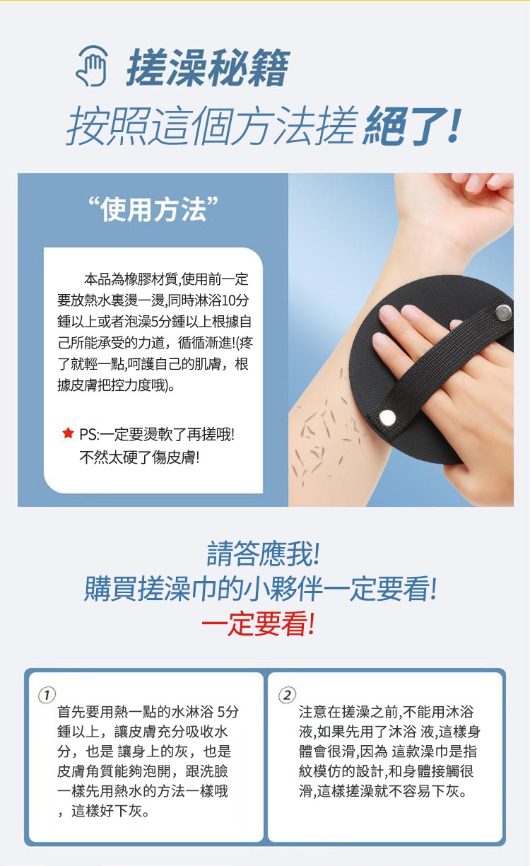 搓泥神器搓澡巾✅溫和潔淨 | 輕鬆去垢✅順應肌膚紋理 | 深層清潔肌膚✅深層去角質 | 嫩滑肌膚