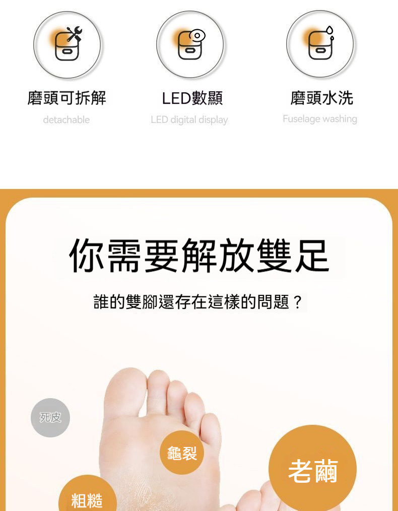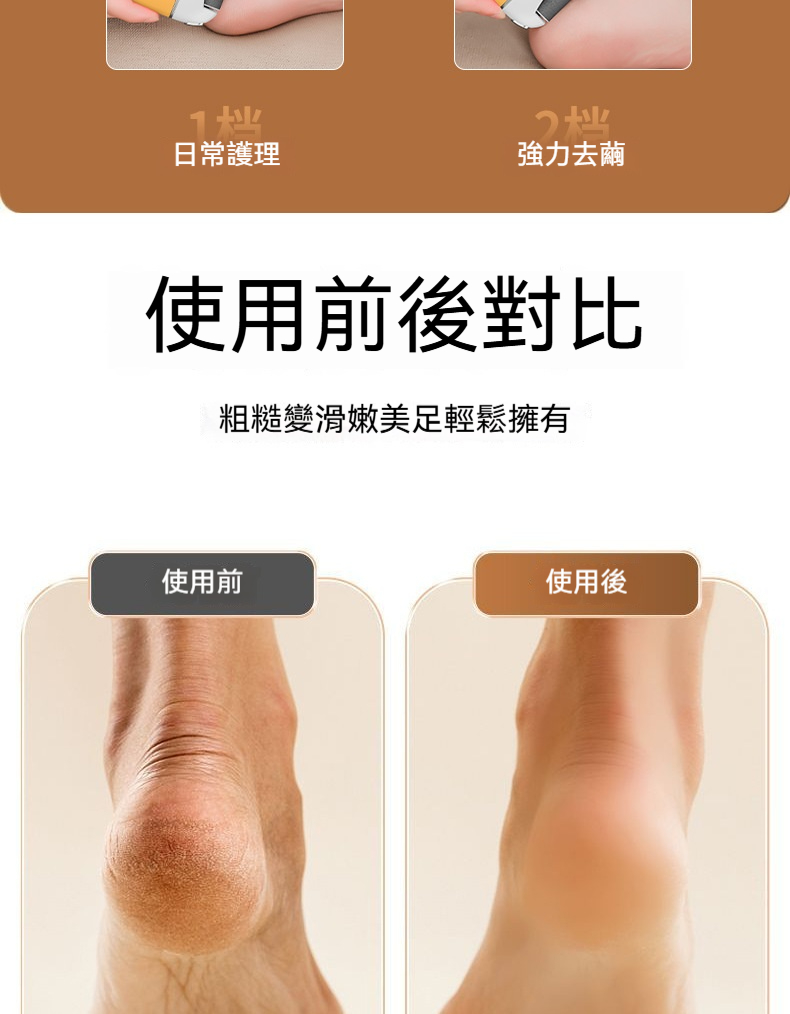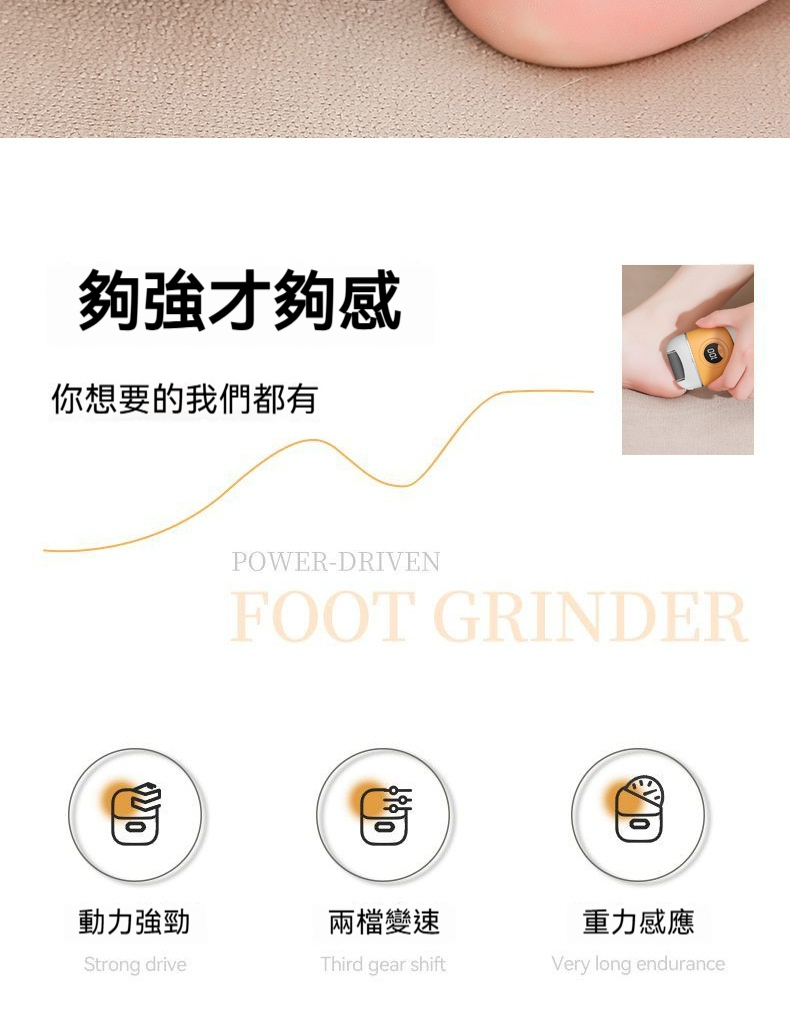 電動磨腳器✅去死皮 除繭 | 腳底嫩滑嬰兒肌✅兩檔智慧調速 | 滿足不同需求✅重壓感應設計 | 智慧除繭