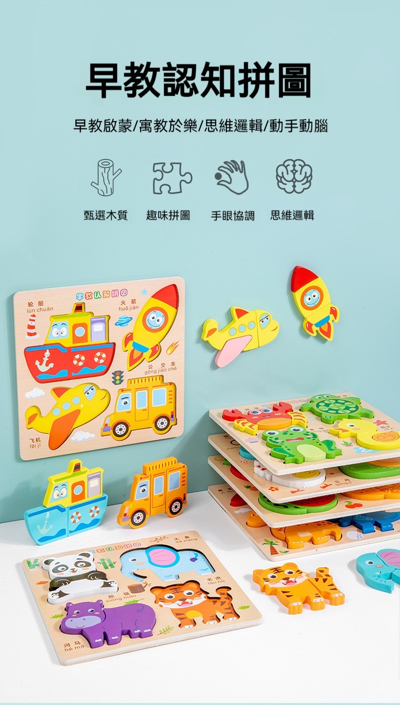 蒙氏早期教育立體拼圖✅大塊拼圖 | 增強趣味性✅動手動手腦 | 鍛鍊手眼協調✅親子互動 | 陪伴式教育