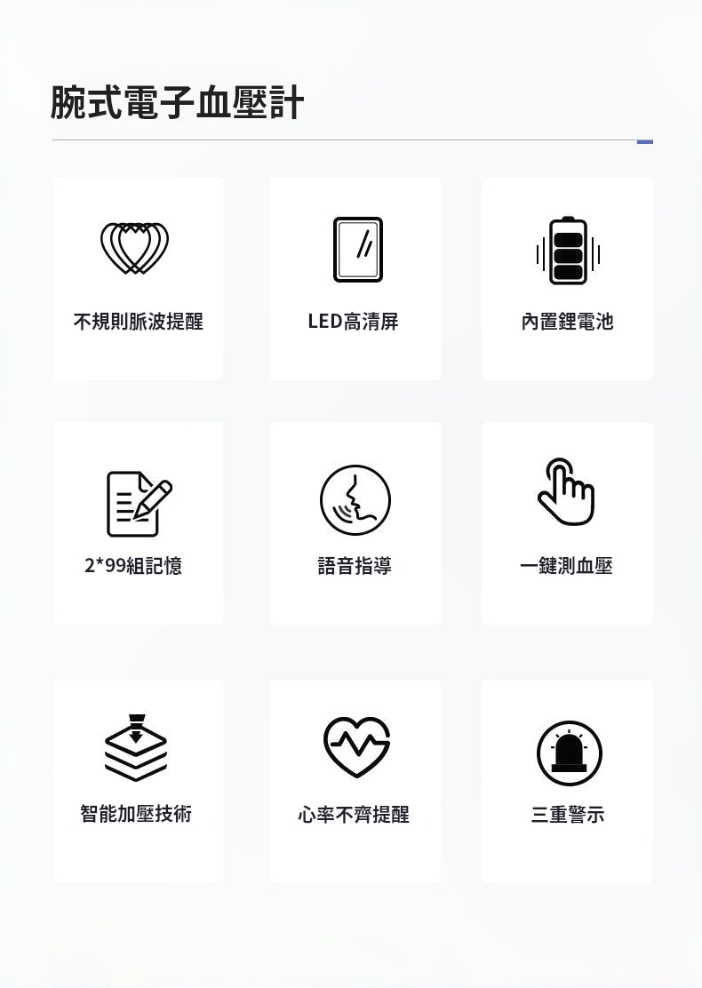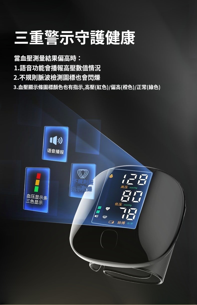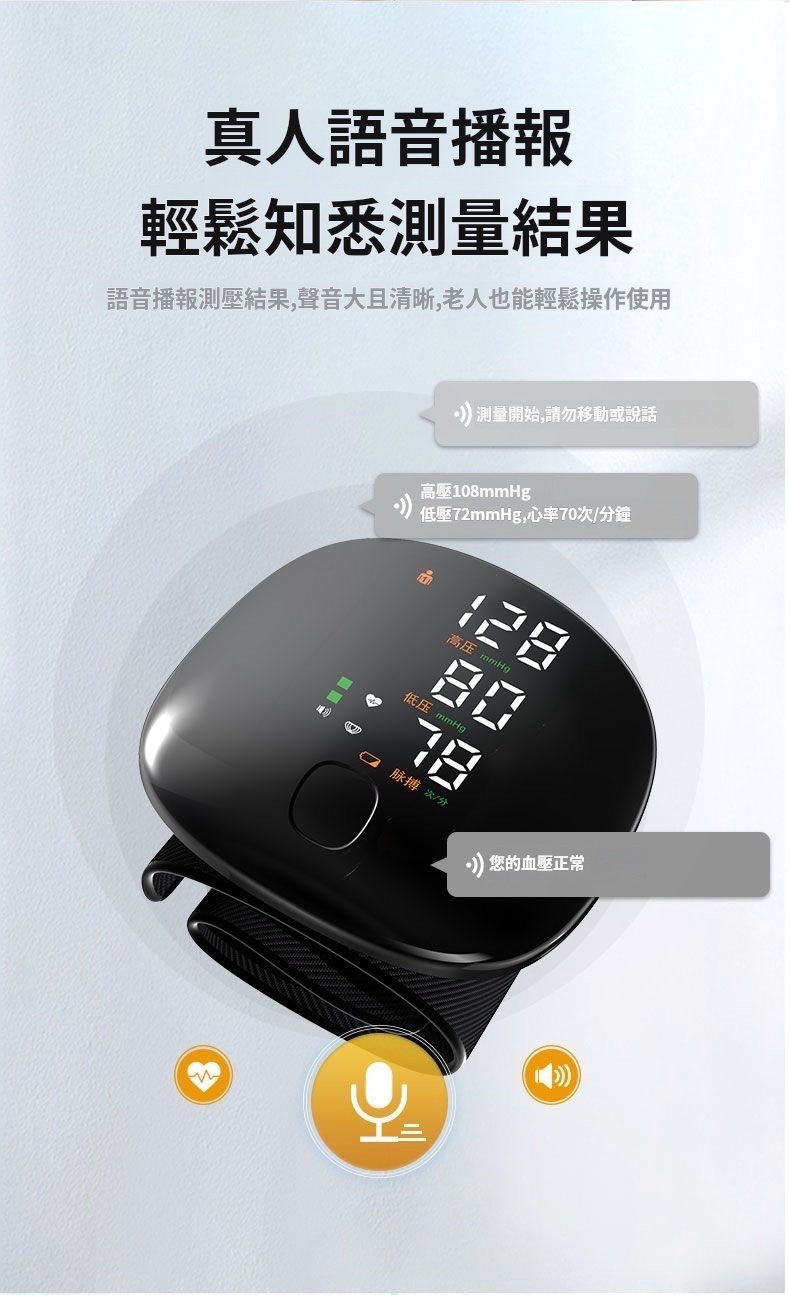 腕式血壓計✅免脫衣即可測量血壓✅配戴舒適 | 小巧便攜 | 隨取隨用✅真人語音播報 | 輕鬆知悉測量結果✅智慧加壓技術 | 壓力盡在掌控
