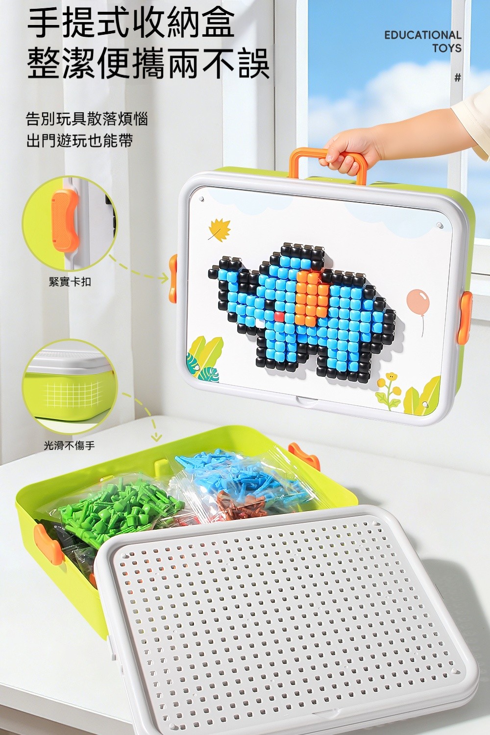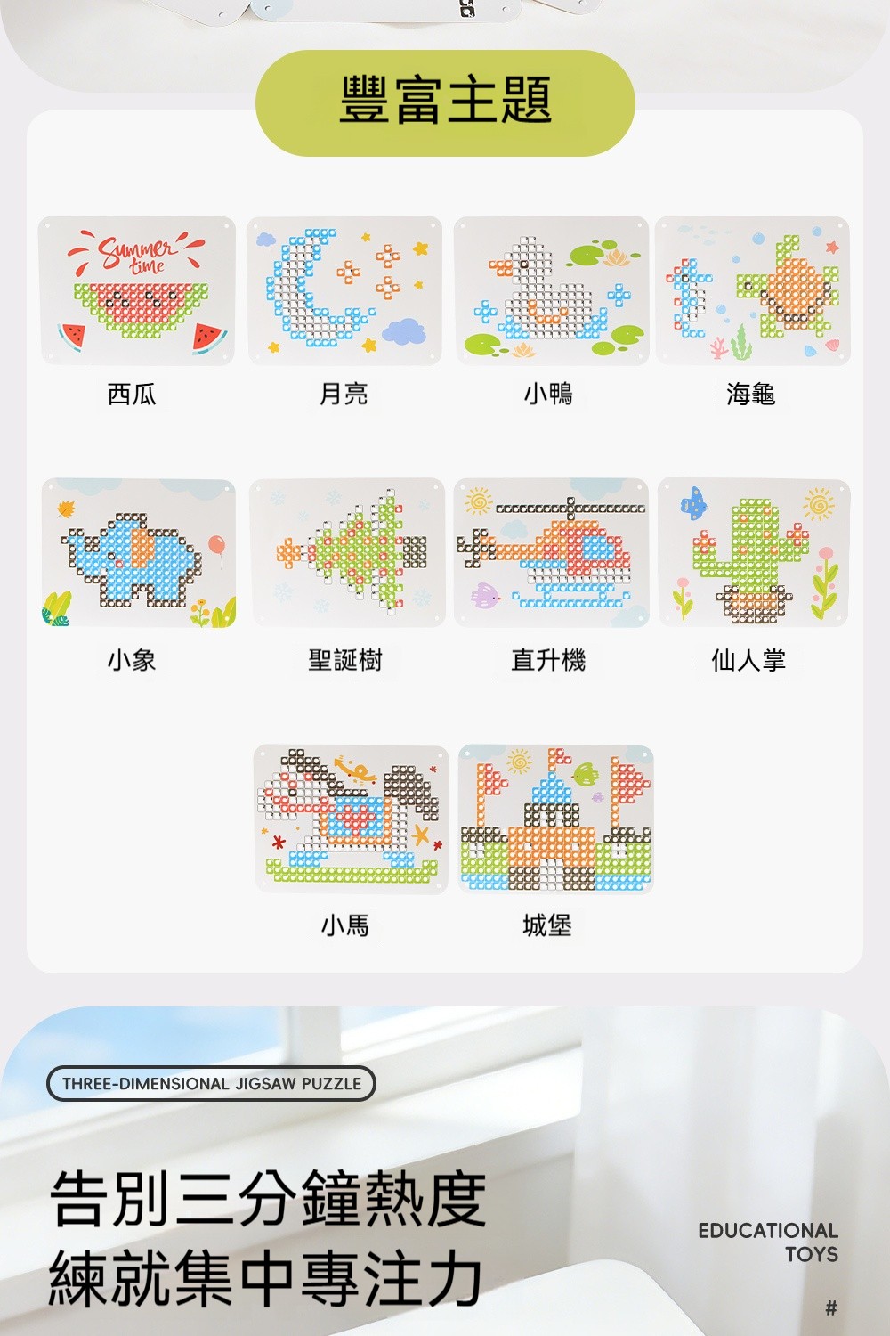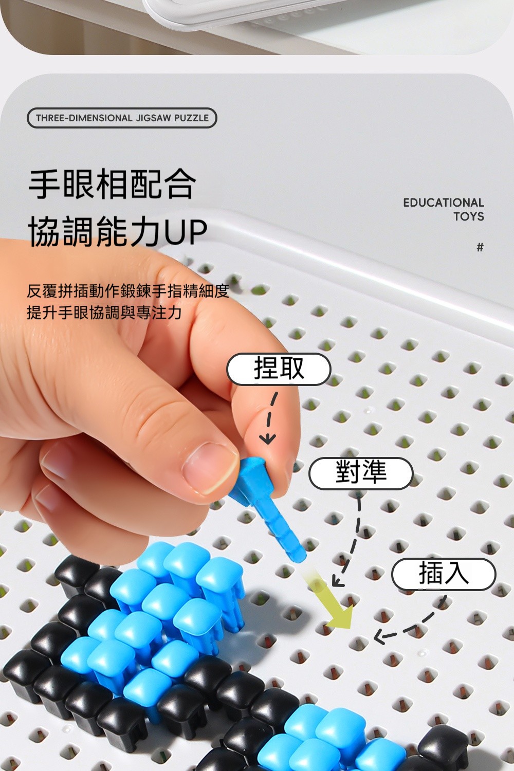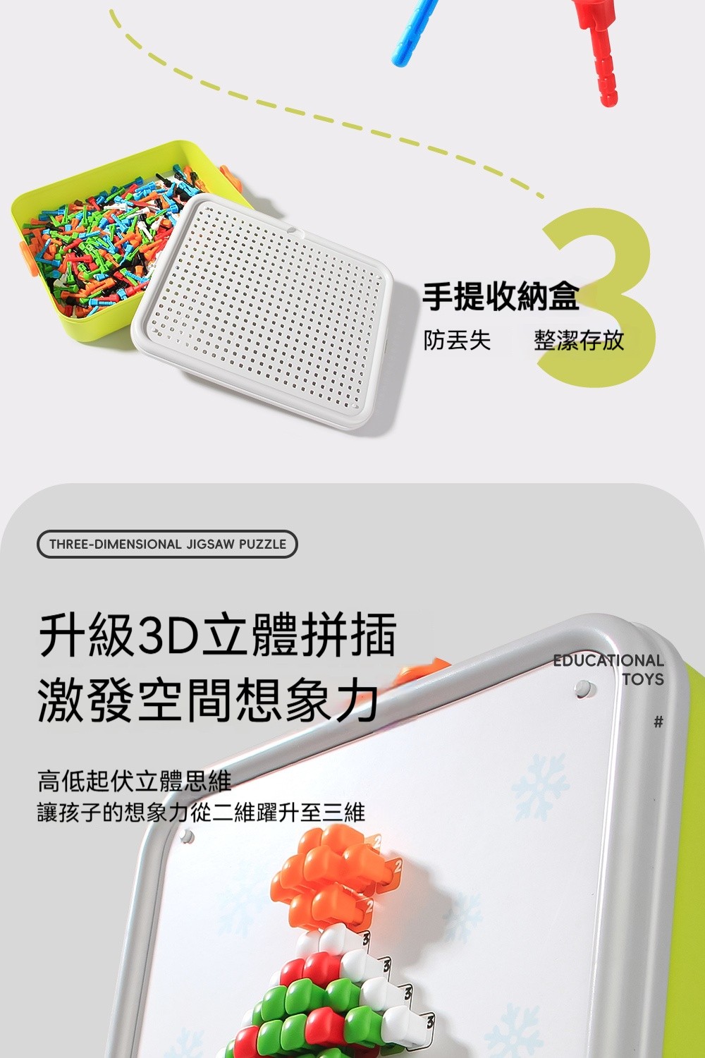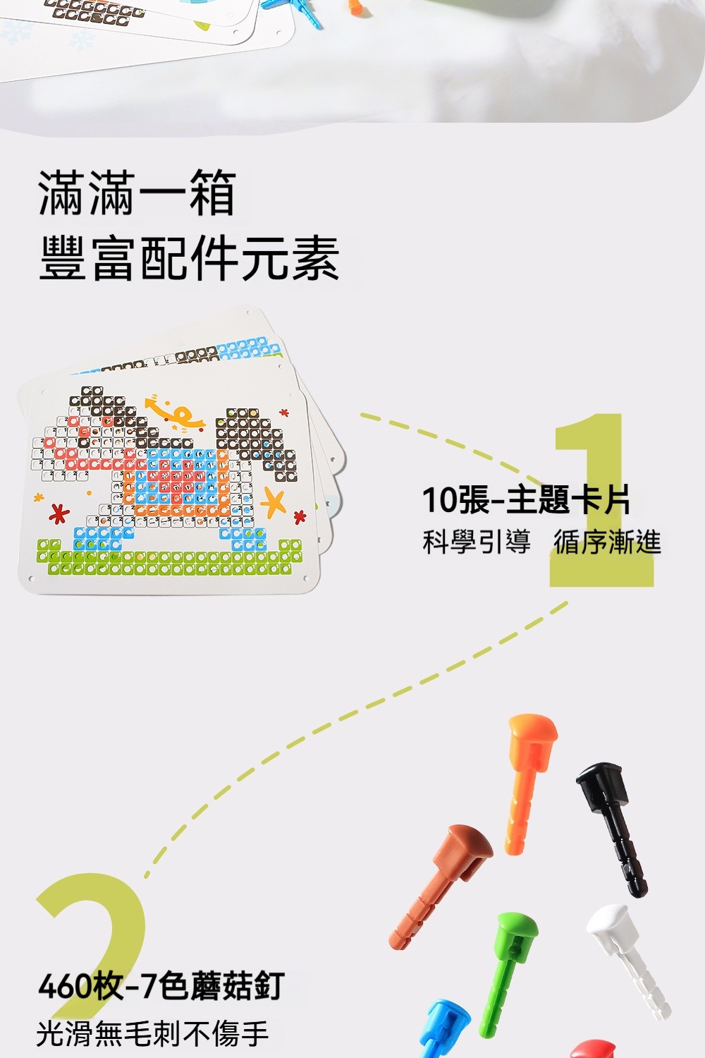 立體蘑菇釘拼圖✅空間思維 | 看平面圖建造立體造型✅精細動作 | 用鑷子夾釘練手部穩定✅顏色配對 | 照圖卡顏色排列學分類
