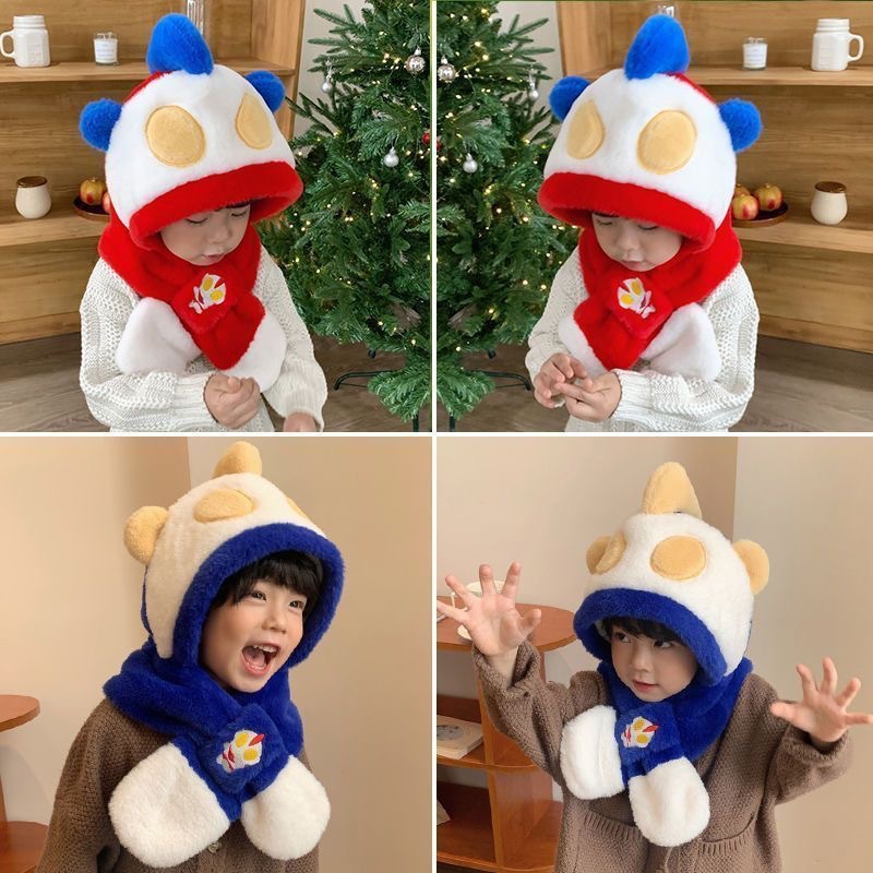 兒童奧特曼圍巾帽子✅一體式設計 | 圍巾接帽子沒遺失煩惱✅彈性防風版型 | 大頭寶寶也能戴✅兒童冬季保暖神器